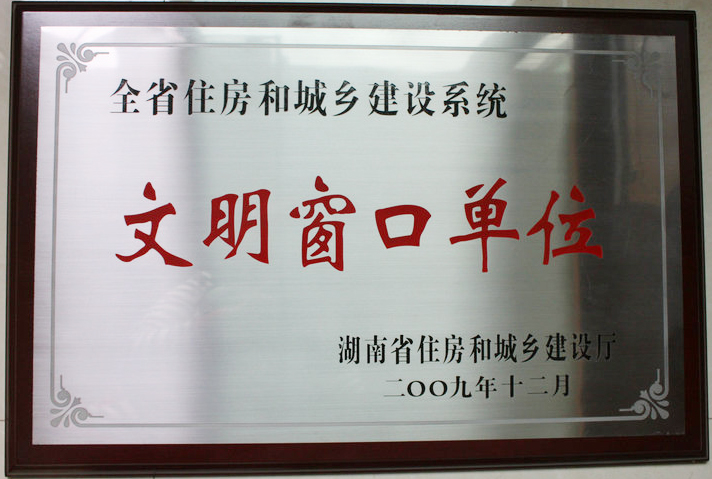 2009年12月被湖南省住房和城鄉(xiāng)建設(shè)廳評為“全省住房和城鄉(xiāng)建設(shè)系統(tǒng)文明窗口單位”